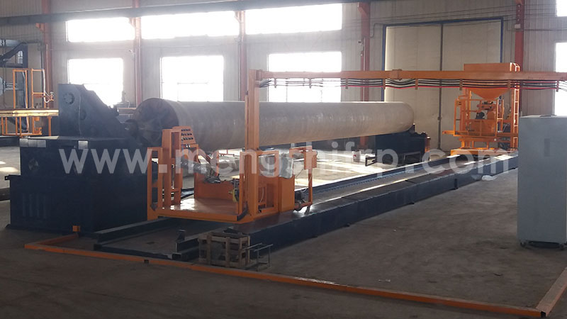 該生產(chǎn)線采用濕法夾砂工藝,在保證管道質(zhì)量的前提下通過降低石英砂中的樹脂含量來降低管道的原材料成本,此裝備控制中心采用中國臺灣產(chǎn)專用工業(yè)計算機,將所纏繞產(chǎn)品的參數(shù)輸入微機,可自動完成產(chǎn)品設(shè)計