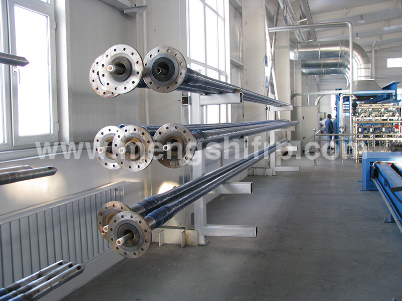 玻璃纖維浸潤樹脂后在鋼制管模具上按預先設計計算好的纏繞角進行螺旋纏繞,*終形成管體的結(jié)構。管體的陰螺紋是在纏繞管體過程中在管端纏繞成型(靠管模具實現(xiàn))。